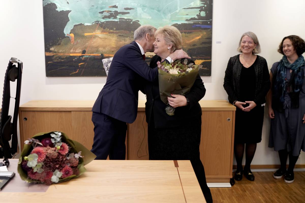 « J’ai mis la politique de côté – et je veux profiter de cette occasion pour vous remercier », a déclaré Støre à Solberg après avoir reçu la carte-clé du bureau du Premier ministre.