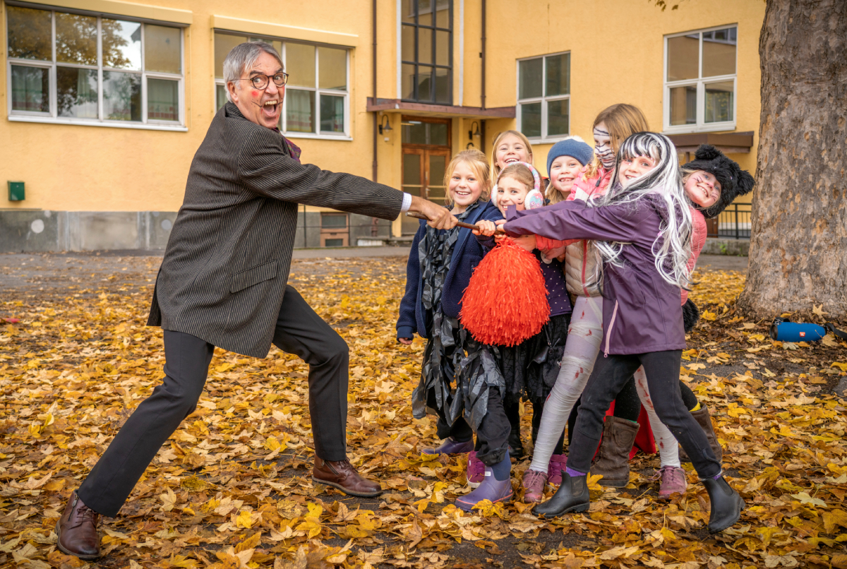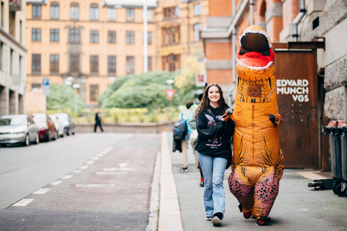 Il s’agit de l’école Bygdøy à Oslo, où le directeur Svein G. Olsen et les étudiants se sont présentés en costumes pour marquer Halloween et s’amuser.