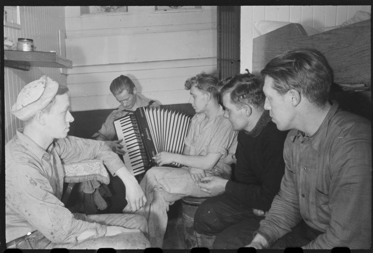 Photo: Équipage à bord du navire norvégien M / S Montevideo, qui est allé en convoi de Liverpool à New York en 1943. Avec eux de New York, ils avaient des munitions; avions, locomotives et explosifs. La photo montre la vie à bord de la marine marchande norvégienne pendant la guerre. Photo : Backer, Ole Friele / NTB
