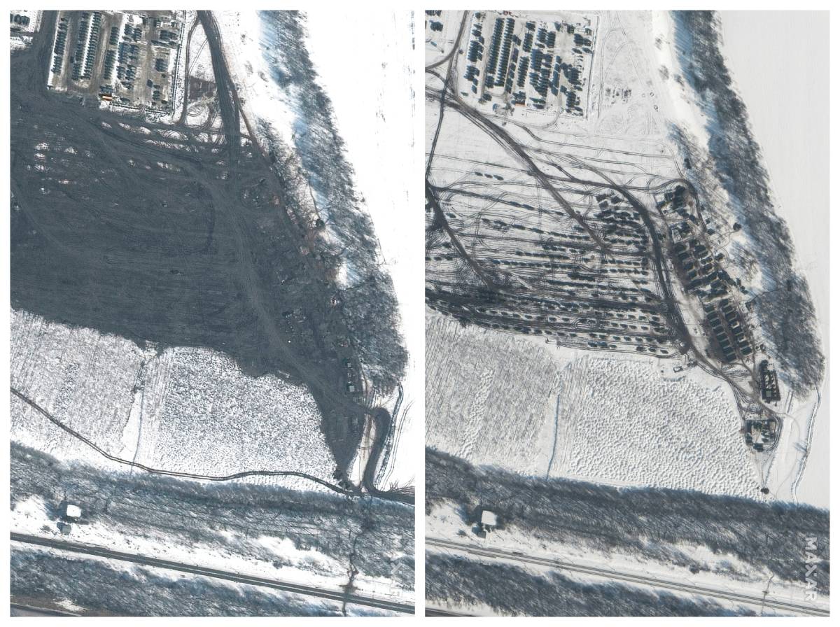 Les nouvelles photos ont été prises dimanche et montrent des traces de véhicules sur des champs enneigés entourés de zones forestières et de routes dans le sud-ouest de la Russie. Plusieurs bâtiments sont également visibles sur les images satellites.