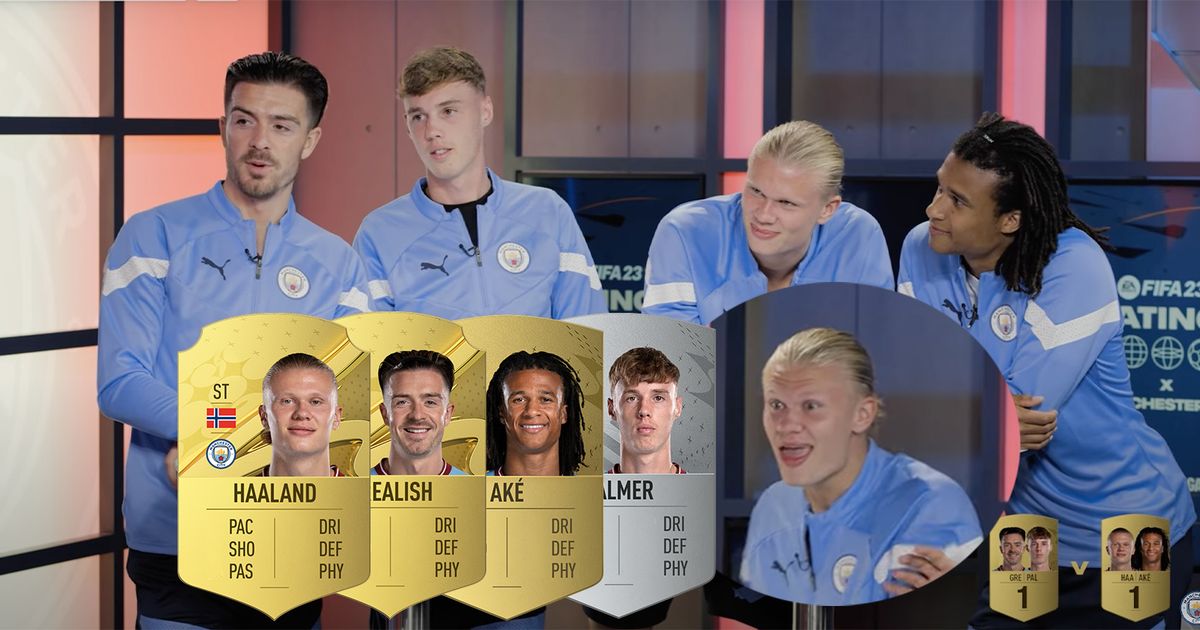 Les notes des joueurs de FIFA 23 de Manchester City ont été officiellement révélées, avec Erling Haaland, Jack Grealish Cole Palmer et Nathan Ake réagissant de manière hilarante à leurs nouvelles notes.