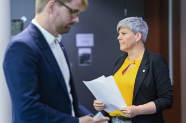 La parole est d’argent. Le directeur général de Sparebanken Vest, Jan Erik Kjerpeseth (tv), et le président du conseil d’administration du géant agricole Mowi, Ole Eirik Lerøy, reçoivent « Hederstegn » de Bergen Næringsråd – une médaille d’argent de haut vol. Leader du Bergen Business Council, Marit Warncke, dans une robe à pieds argentés. La présidente du conseil Katrine Trovik avec une chaîne en argent nouvellement polie. Les trésors sur la table du 18ème siècle : Aussi l’argent.
