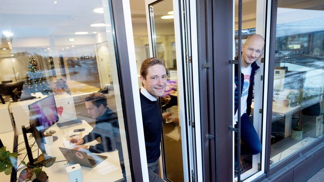 De gauche à droite : le PDG Andreas Slettvoll, le directeur technologique Gaute Gamst et le directeur commercial Joe Beaudin. Ici, dans les bureaux d’Oslo. (Photo : Øyvind Elvsborg)