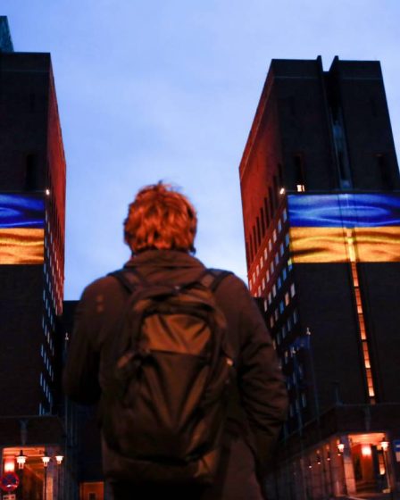 Photo : Javad Parsa / NTB Jeudi soir, l’hôtel de ville d’Oslo a été illuminé aux couleurs du drapeau ukrainien …